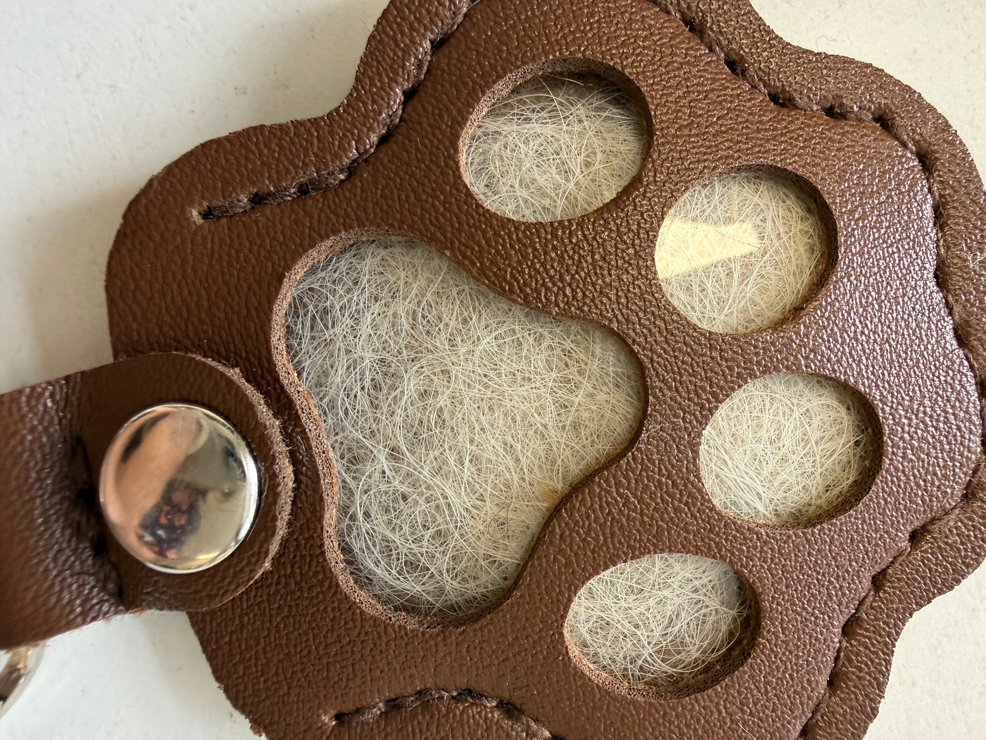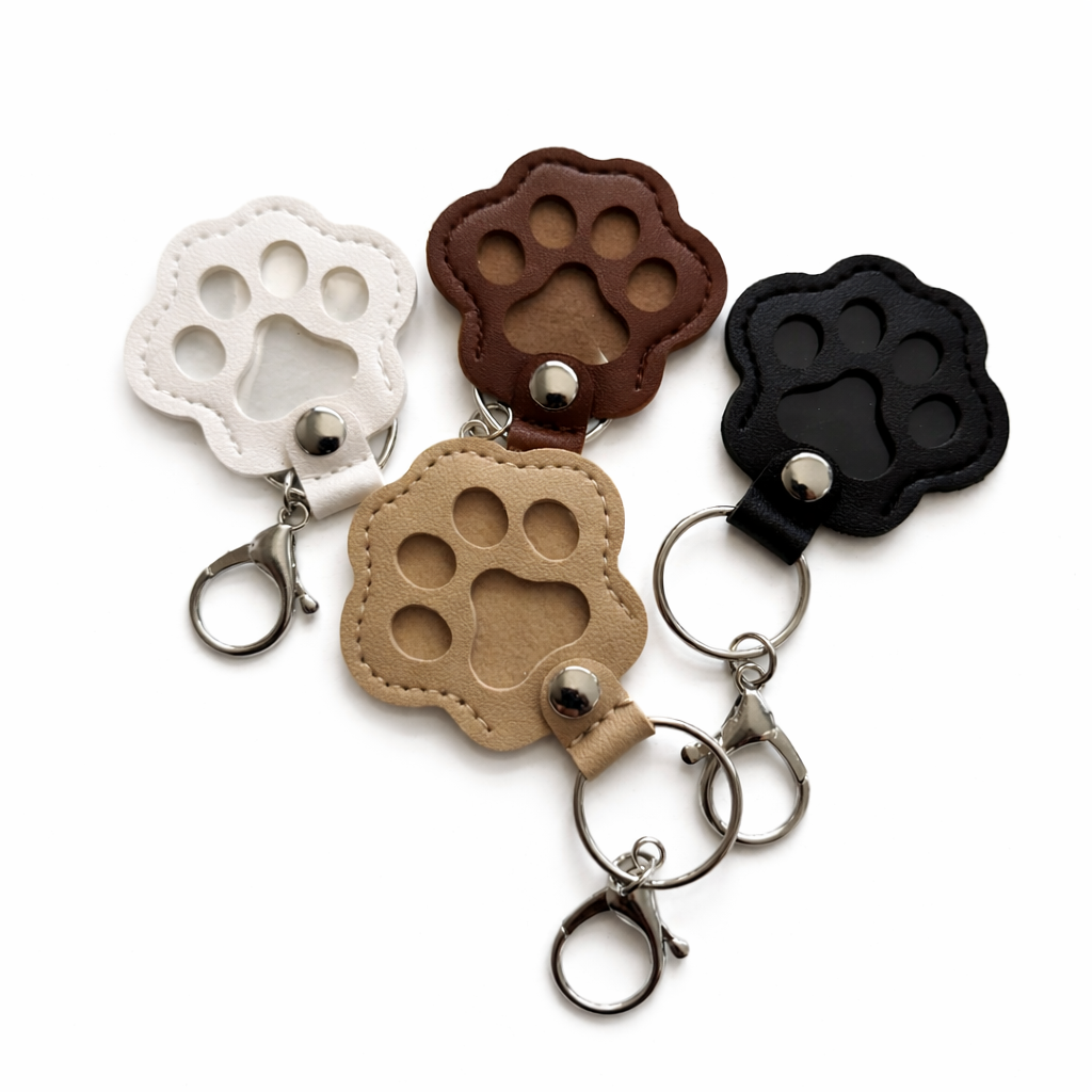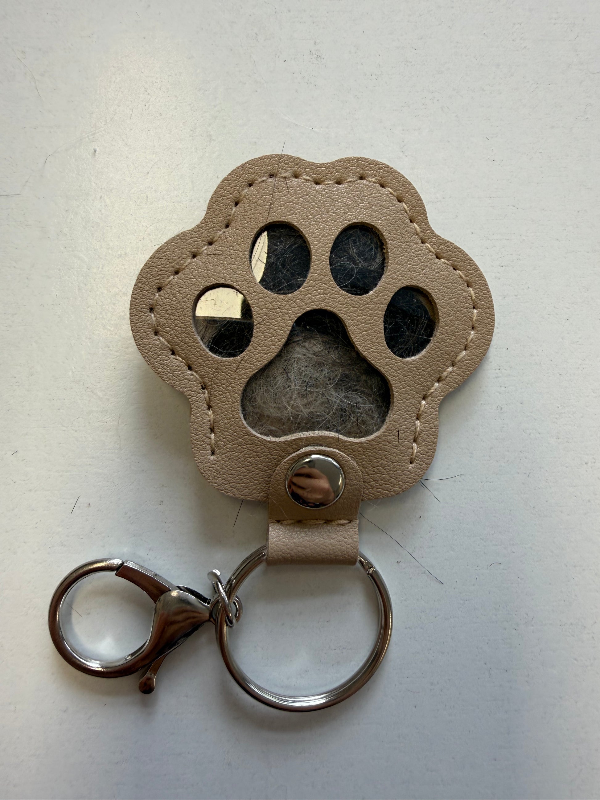 Ce porte-clés en forme de patte s’ouvre discrètement pour vous permettre d’y glisser les poils de votre chien ou chat, ou une petite photo souvenir.